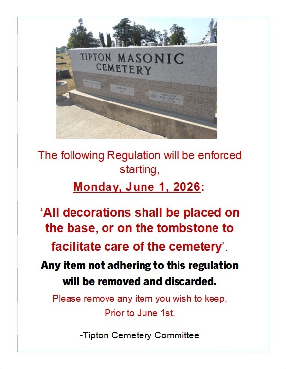 : Tipton Fire Station, 301 Lynn St., 5:30 p.m.
